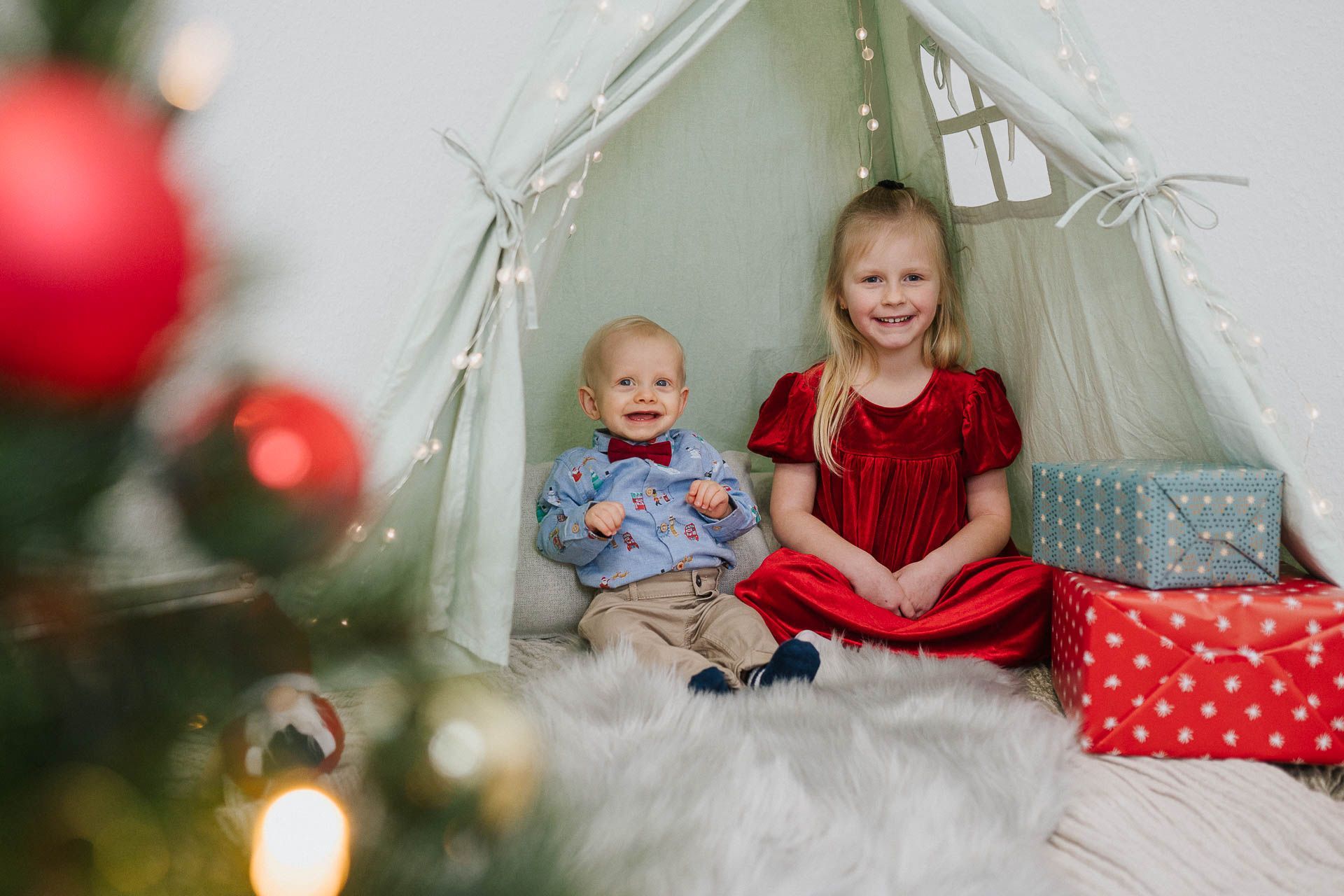 Familien-, Geschwister & Einzel-Fotos vor weihnachtlichen Kulissen.