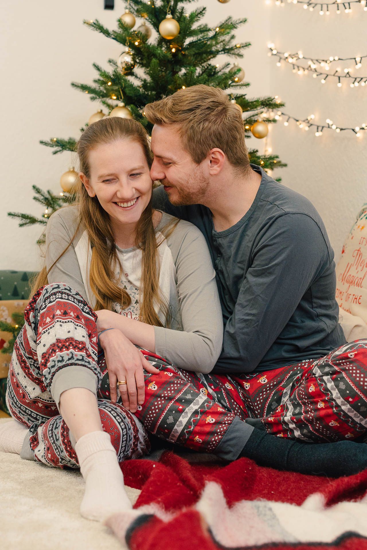 Zieht euch bitte so richtig kuschelig, gemütlich an. Es muss nicht zwangsläufig ein Weihnachtsoutfit sein. Es reicht auch der Lieblingspullover, in dem man so richtig gerne kuschelt – also ein Cozy-Look.